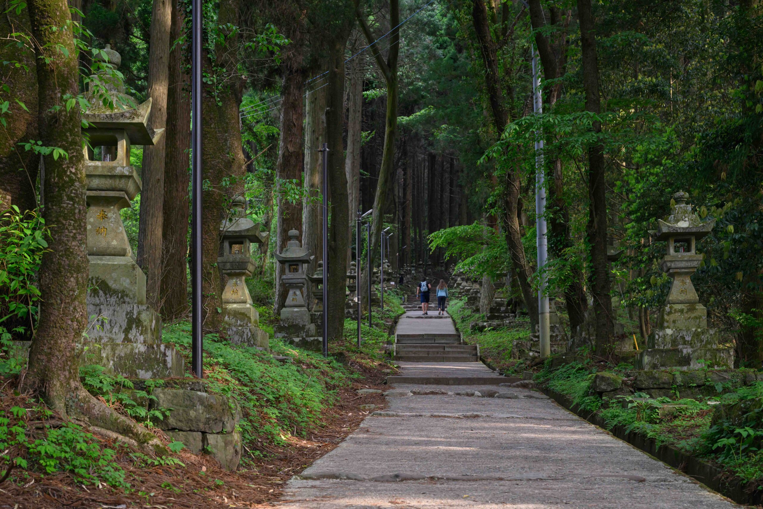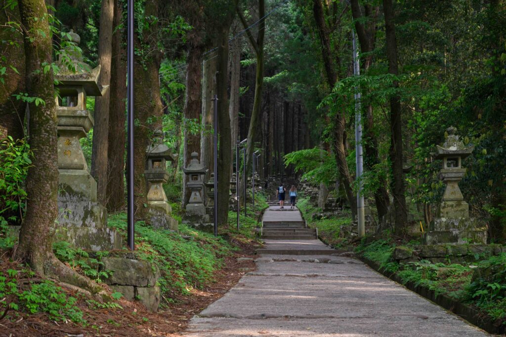 神殿へと続く緑の気配が濃い参道には97基の石灯籠が並ぶ。アニメ映画のロケ地で有名になり、幻想的な雰囲気はSNSでも話題を呼んでいる。 阿蘇郡高森町上色見2619 ※熊本リヒト創刊号(25年7月発行)より 上色見熊野座神社住所 :阿蘇郡高森町上色見2619 -