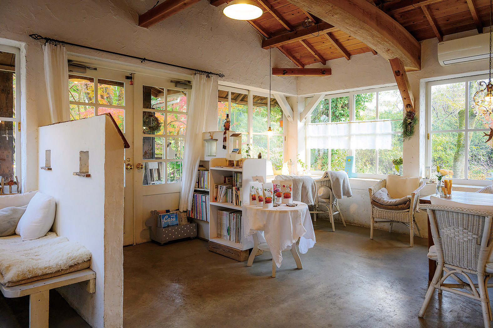 可愛い森のカフェでくつろぐひととき。