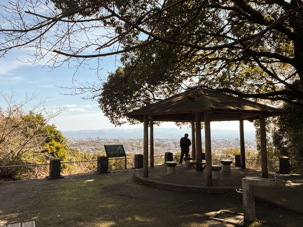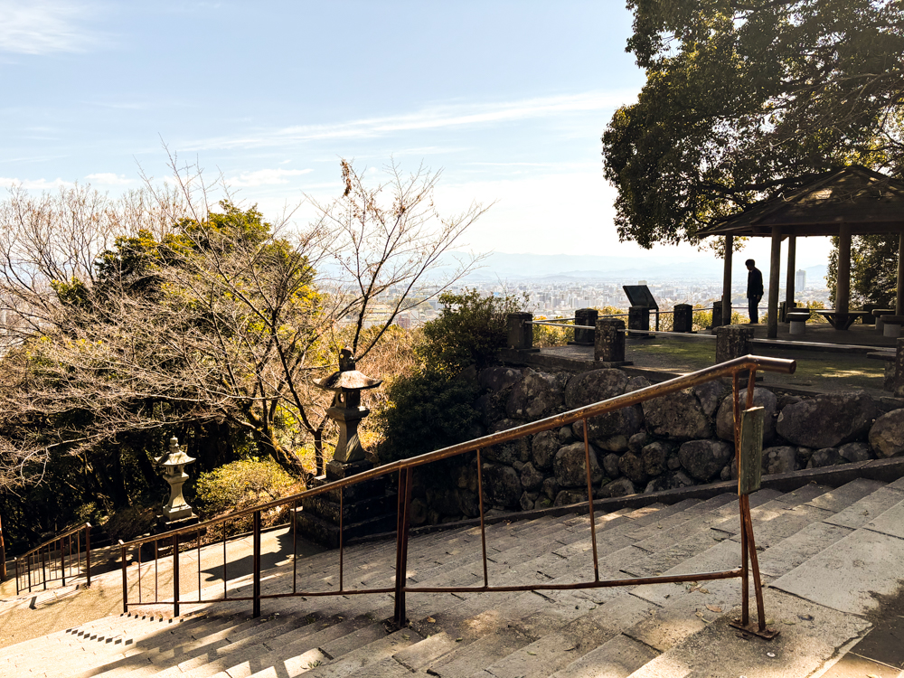 石段を上り振り返ると、熊本のまちが広がる。城下町として築かれたこの土地を、清正公が今も静かに見守っているかのようだ。