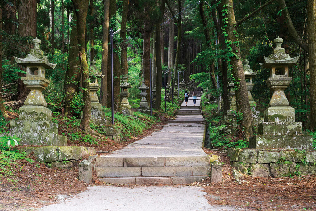 神殿へと続く緑の気配が濃い参道には97基の石灯籠が並ぶ。アニメ映画のロケ地で有名になり、幻想的な雰囲気はSNSでも話題を呼んでいる。