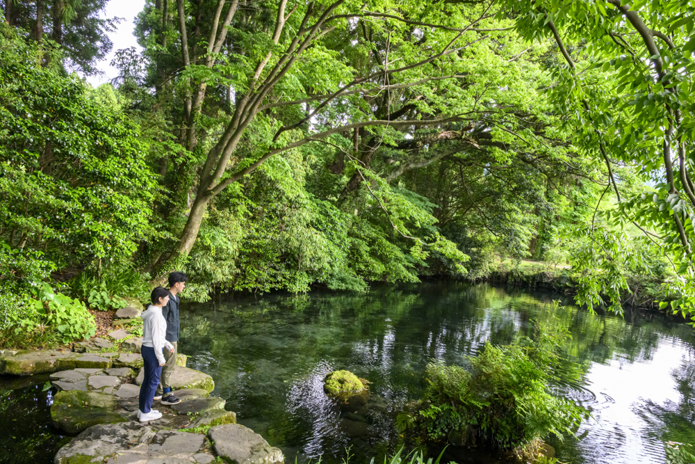 毎分約2トンの水が湧くこの場所は、熊本名水百選にも選ばれている。