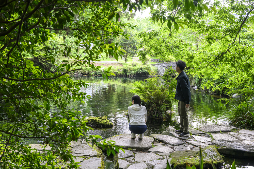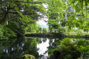 水が湧く場所は多い南阿蘇のなかで、水面として広がるこの景色は、ここならではのもの。