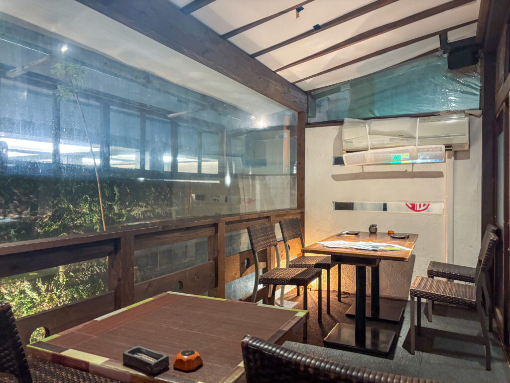 店内にはテーブル席や個室、テラス席を備え、最大40名まで対応可能な宴会利用もOK。