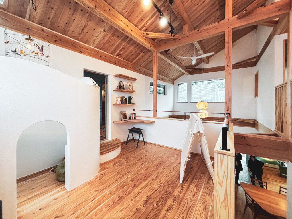ロフトや書斎、スキップフロア、土間は、家族の気配を感じながらも、それぞれの時間を大事に過ごせる居場所。