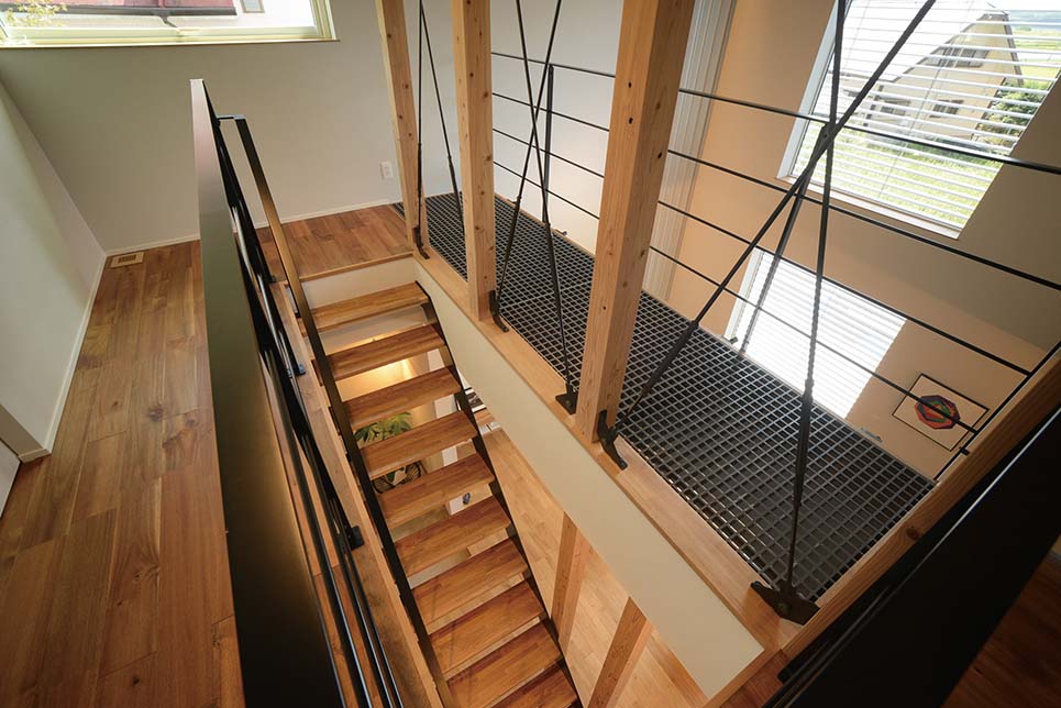 夏は巨大な電動ブラインドが光を繊細にコントロールし、快適さを保つ。UA値0.26、C値0.2という全国でも高水準の性能を備え、72畳の空間をエアコン1台でまかなえるほど省エネ性に優れている。