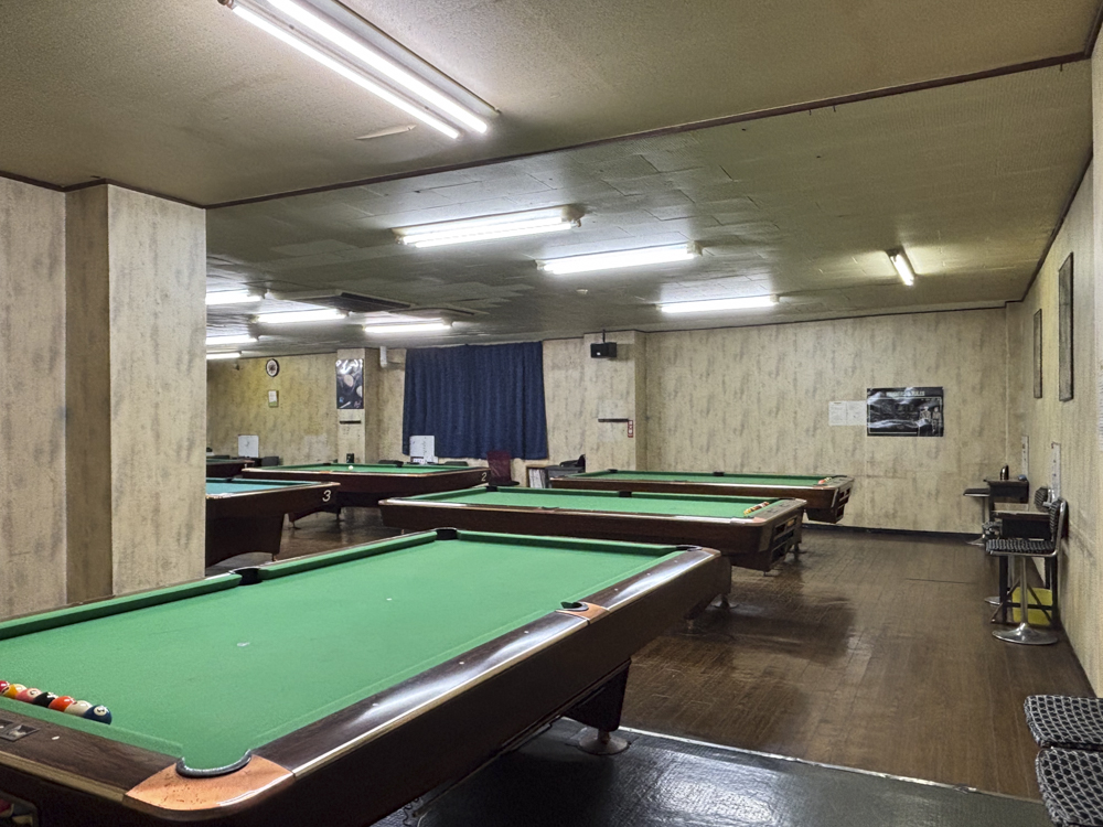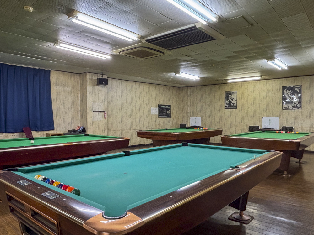 昭和の面影が残る落ち着いた雰囲気の中、ビリヤードを楽しめる一軒だ。
